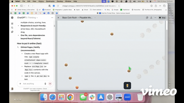 The latest generation of ChatGPT can scaffold, code, test, and refine simple web games and microsites in a single session. For entrepreneurs, that means interactive lead magnets, onboarding mini‑games, and product explainers can go from napkin sketch to playable MVP in hours—not weeks.